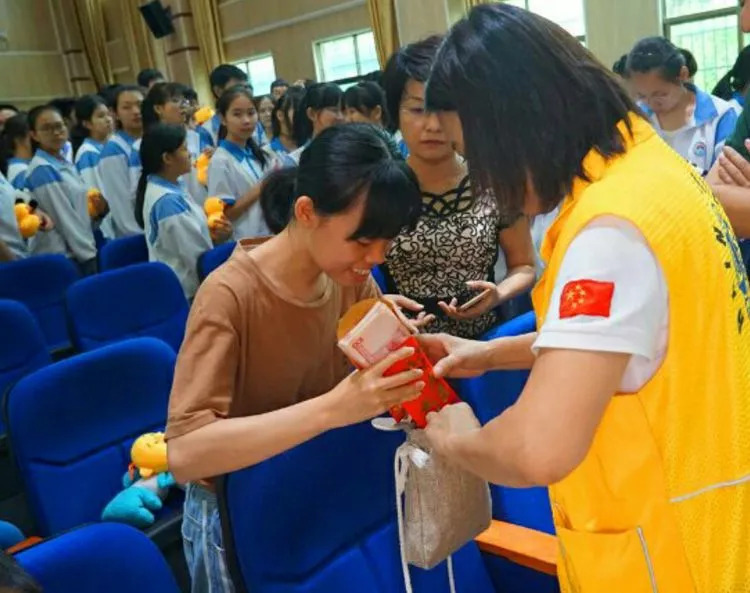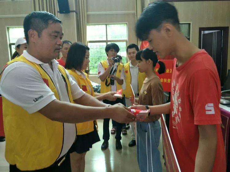 西沙服務(wù)隊(duì)創(chuàng)隊(duì)隊(duì)長吳怡、現(xiàn)任隊(duì)長吳經(jīng)銳向貧困學(xué)生捐贈助學(xué)金