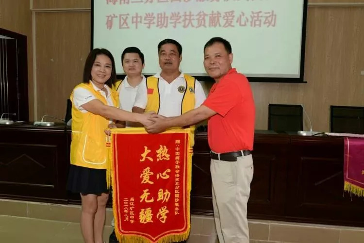 昌江礦區(qū)中學(xué)李蘭松校長向西沙服務(wù)隊(duì)贈送錦旗